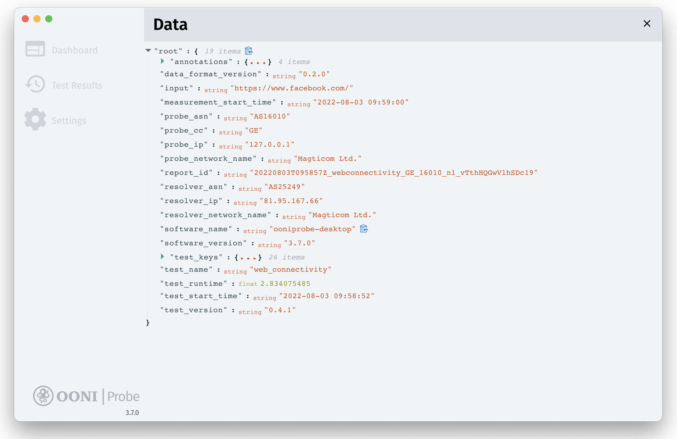 AS16010for Magticom Ltd.); - Network measurement data (which depends on the OONI Probe test).